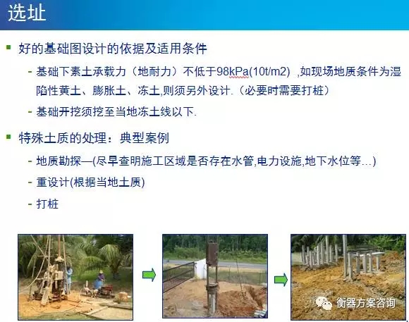 接地原則:保證接地電阻小于4歐姆.-基礎(chǔ)混凝土內(nèi)縱橫鋼筋需對(duì)50%以上的交叉點(diǎn)用16#鐵絲捆扎起來,各地腳螺栓須與鋼筋網(wǎng)牢固焊接,形成分布式接地網(wǎng)。-在穿線管附近垂直打入四根角鋼(至少2m深),并與基礎(chǔ)接地網(wǎng)焊成一體-如磅房離基礎(chǔ)大于15m,需在磅房附近設(shè)置接地樁-對(duì)于防爆秤,須埋在磅房外,離墻約200mm.如是改造秤,基礎(chǔ)接地電阻達(dá)不到小于4歐姆的要求須另增設(shè)接地樁。